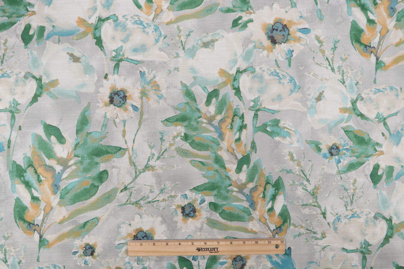 2 Yards Kelly Ripa Home Flower Mania Printed Cotton Drapery Fabric in Seaglass Details