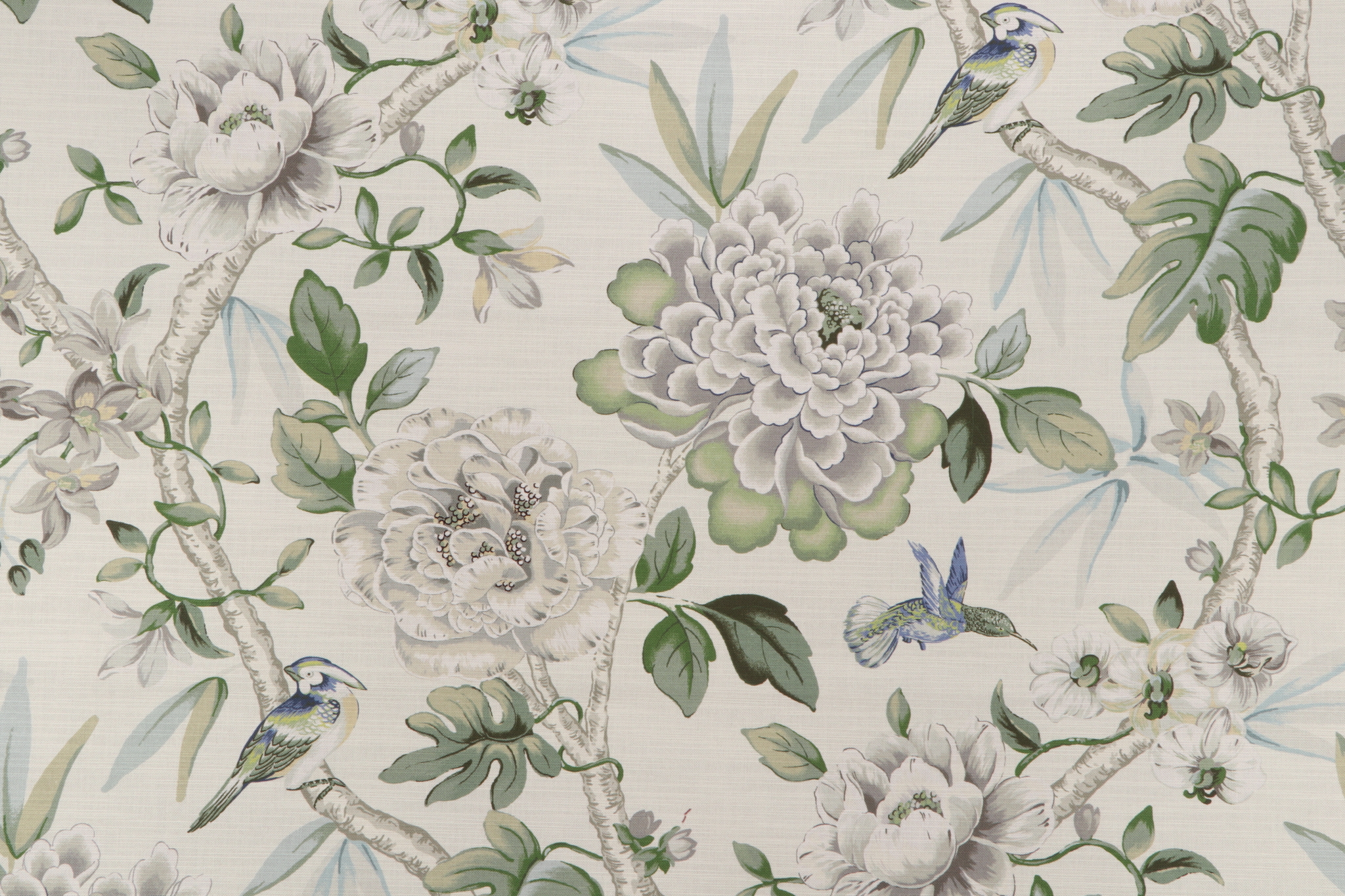 PK Lifestyles Peony Portico Printed Cotton Drapery Fabric in Dove Details