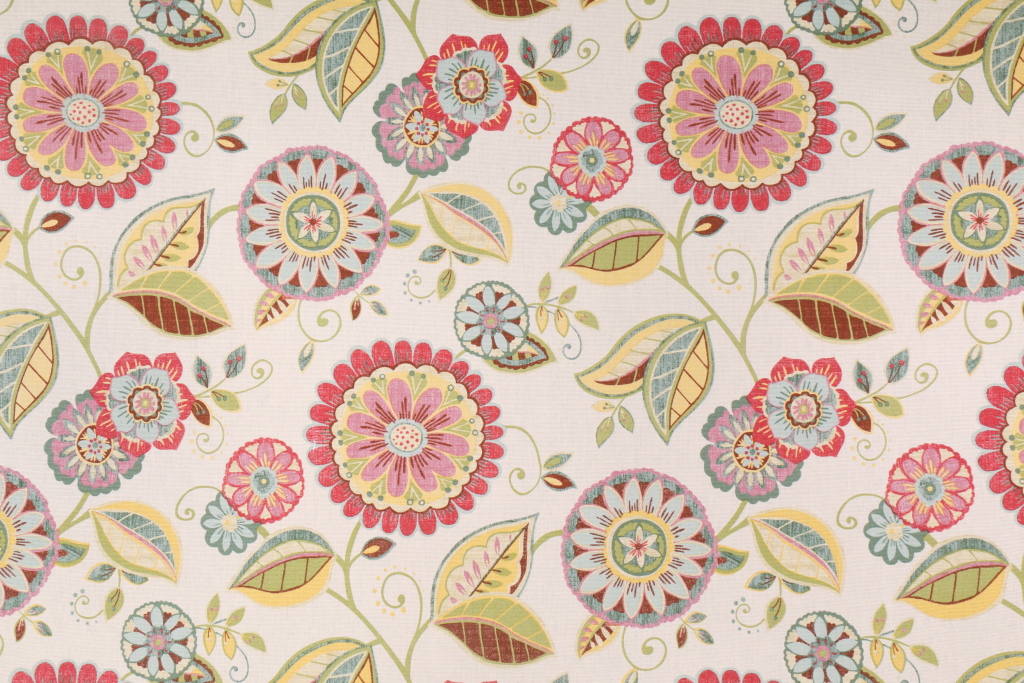 Mill Creek Apogee Printed Cotton Drapery Fabric in Spring Rose. This printed fabric is perfect for window treatments, decorative pillows, handbags, light duty upholstery applications and almost any craft project. This fabric has a soft workable feel yet is stable and durable.