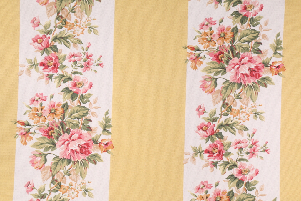 Ralph Lauren Floral Stripe Printed Cotton Drapery Fabric in Yellow. This printed fabric is perfect for window treatments, decorative pillows, handbags, light duty upholstery applications and almost any craft project. This fabric has a soft workable feel yet is stable and durable.