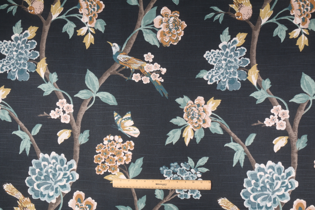 1.25 Yards Robert Allen Dwell Studio Helene Floral Printed Cotton Drapery Fabric in Admiral Details