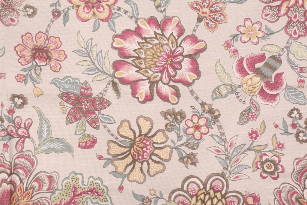 Robert Allen Kyran Vines Printed Cotton Drapery Fabric in Linen is a remnant. Fabric remnants refer to leftover pieces of fabric from production runs at manufacturing sites or pieces that remain from by the yard stock. The lengths of these remnants can vary from a few inches to several yards and are typically sold at a reduced price, since they represent remaining inventory.