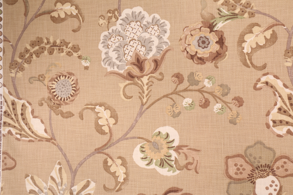 2.25 Yards Robert Allen Woven Garden Printed Cotton Drapery Fabric in Camel Details
