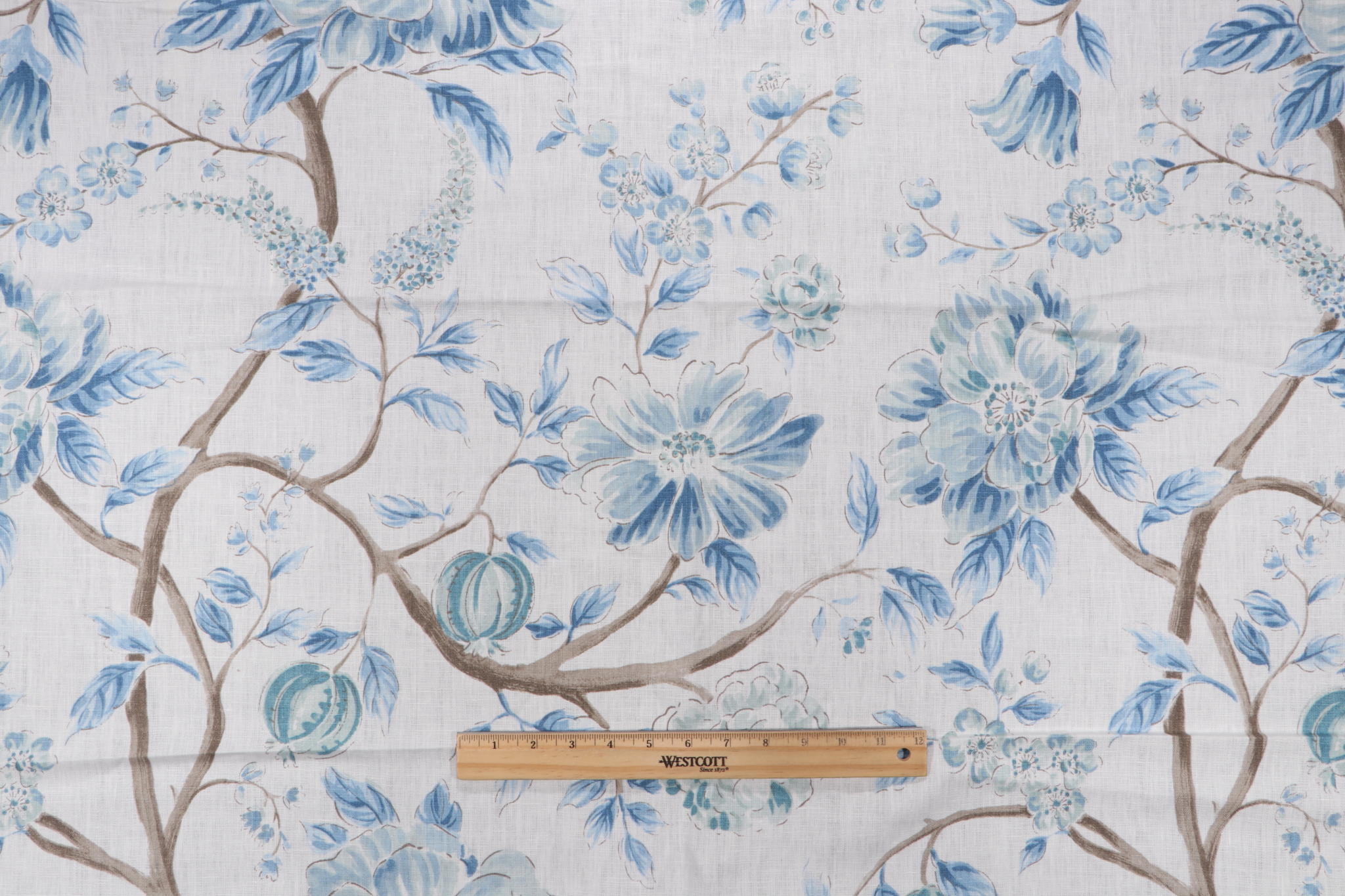 .75 Yards Sarah Richardson Errington Printed Linen Drapery Fabric in Lake for Kravet Details