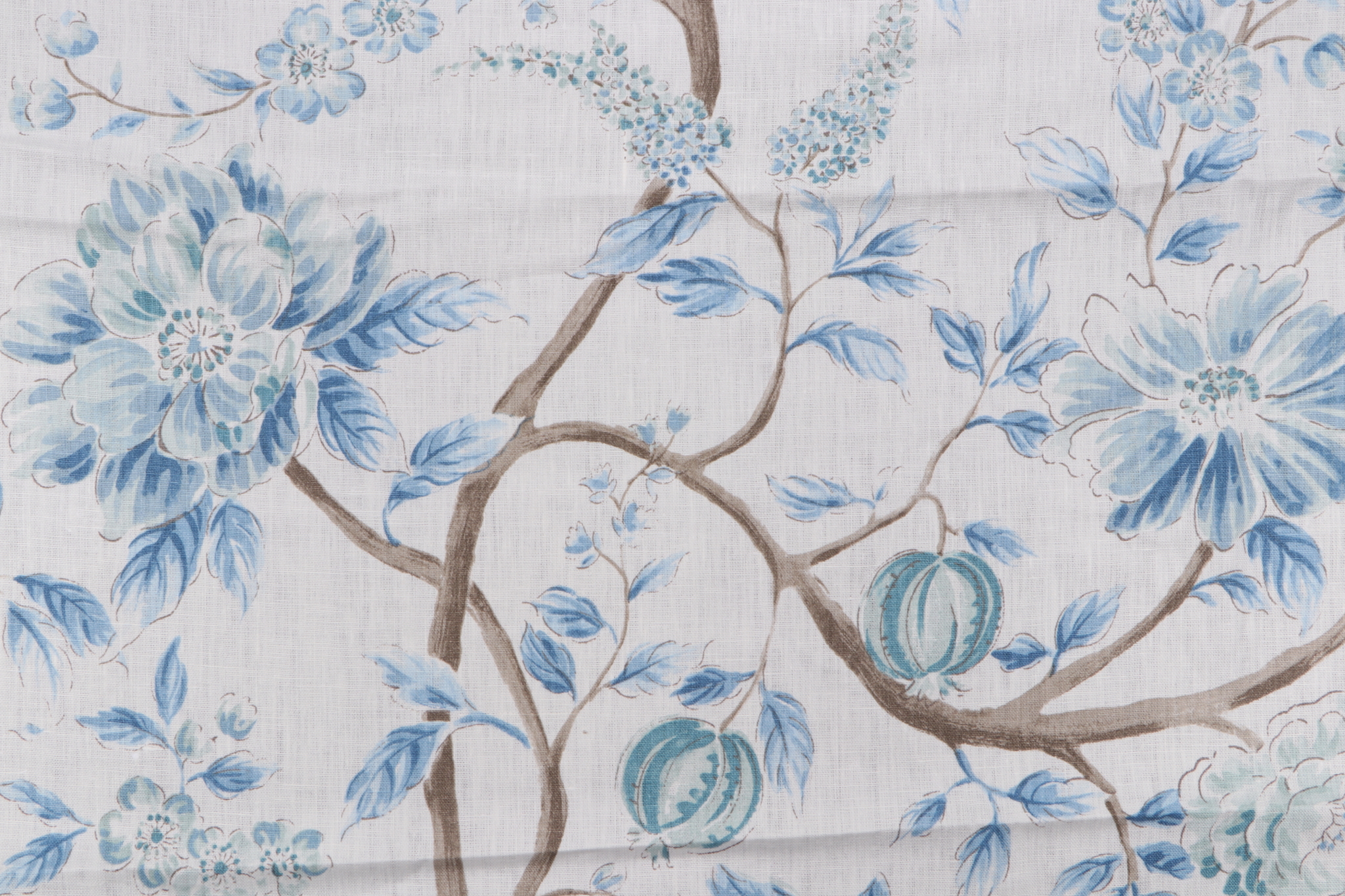 Sarah Richardson Errington Printed Linen Drapery Fabric in Lake for Kravet CLOSEOUT is a remnant, which is sold as a whole piece.
