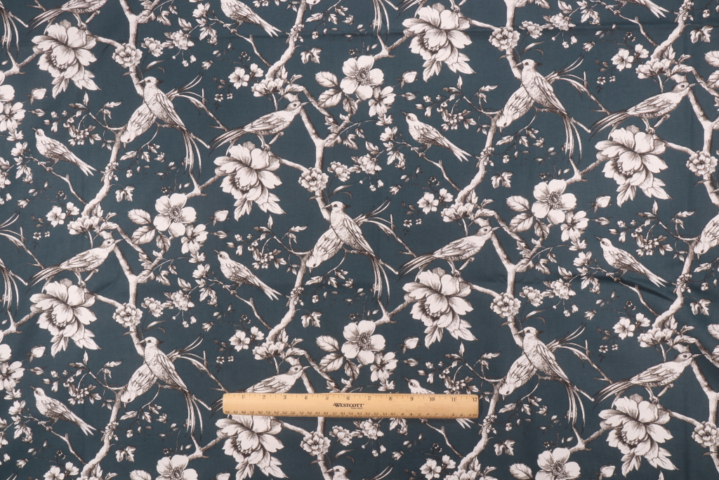 Stof France Fauvette Printed Cotton Drapery Fabric in Petrole is a remnant, which is sold as a whole piece.