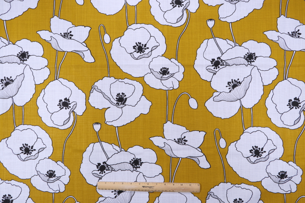 1.63 Yards Stof France Pavot Printed Cotton Drapery Fabric in Moutarde Details
