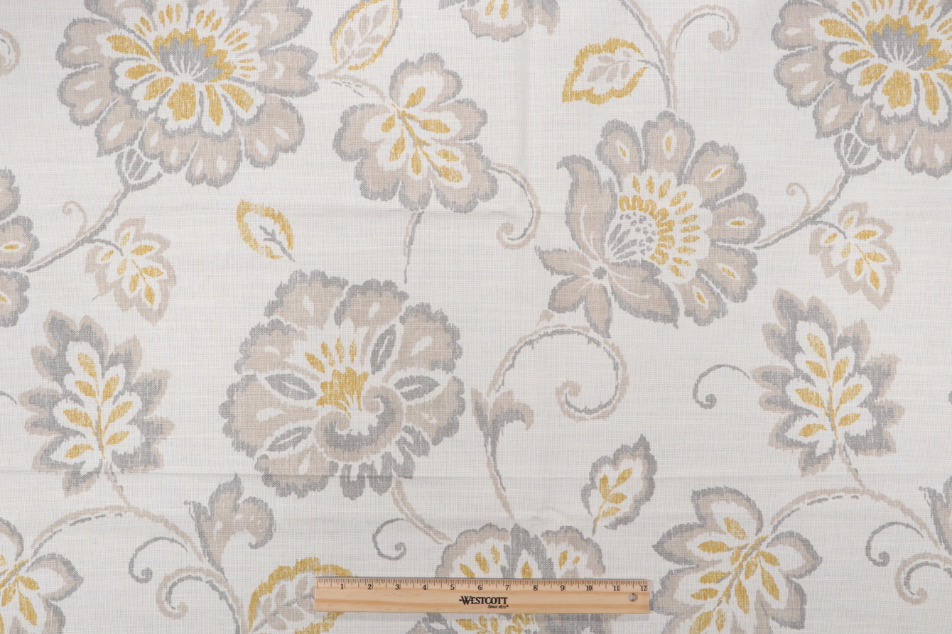 Thibaut Alexa F94917 Printed Drapery Fabric in Gold and Grey is a remnant, which is sold as a whole piece.