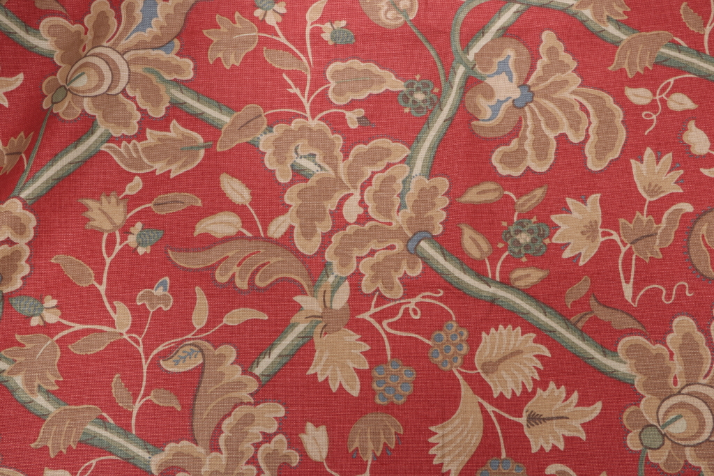 2.1 Yards Thibaut Denmark Printed Cotton Linen Decorator Fabric in Red and Cream F96032 Details