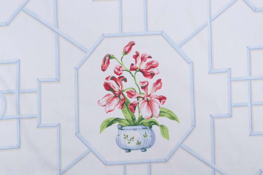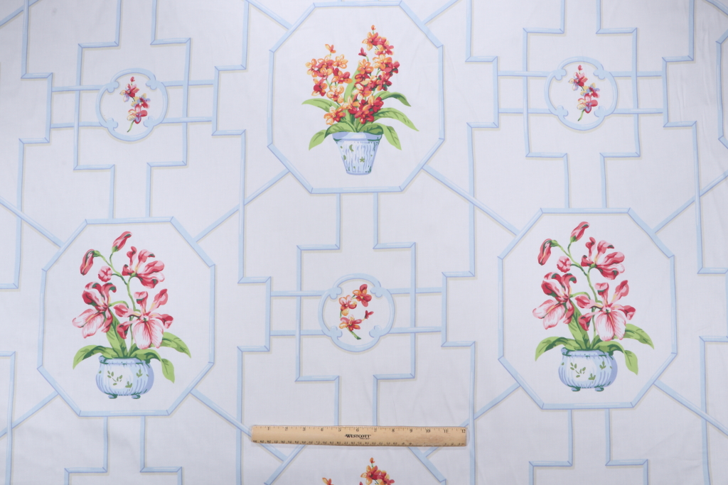 3.38 Yards Thibaut Orchid F93123 Printed Cotton Drapery Fabric in White Details