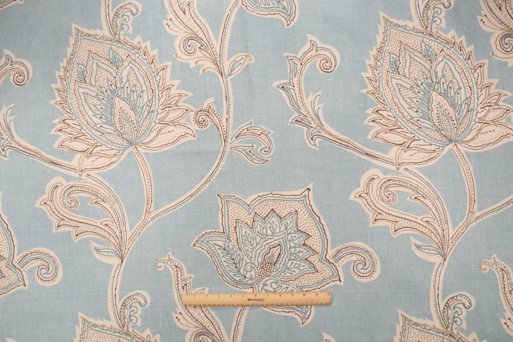 1.75 Yards Thibaut Orissa F97914 Printed Linen Blend Drapery Fabric in Aqua Details