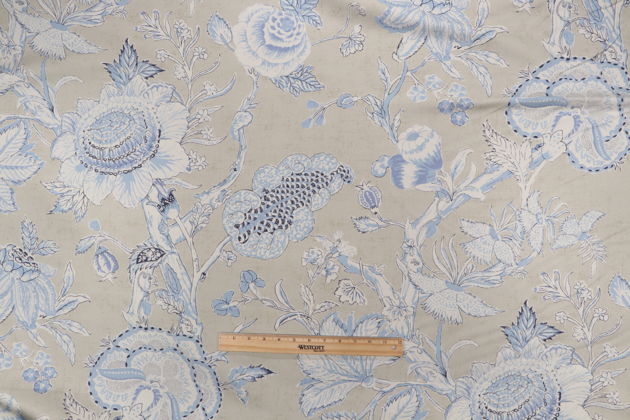 9.88 Yards Thibaut Rittenhouse F94146 Printed Cotton Blend Drapery Fabric in Blue and Tan Details
