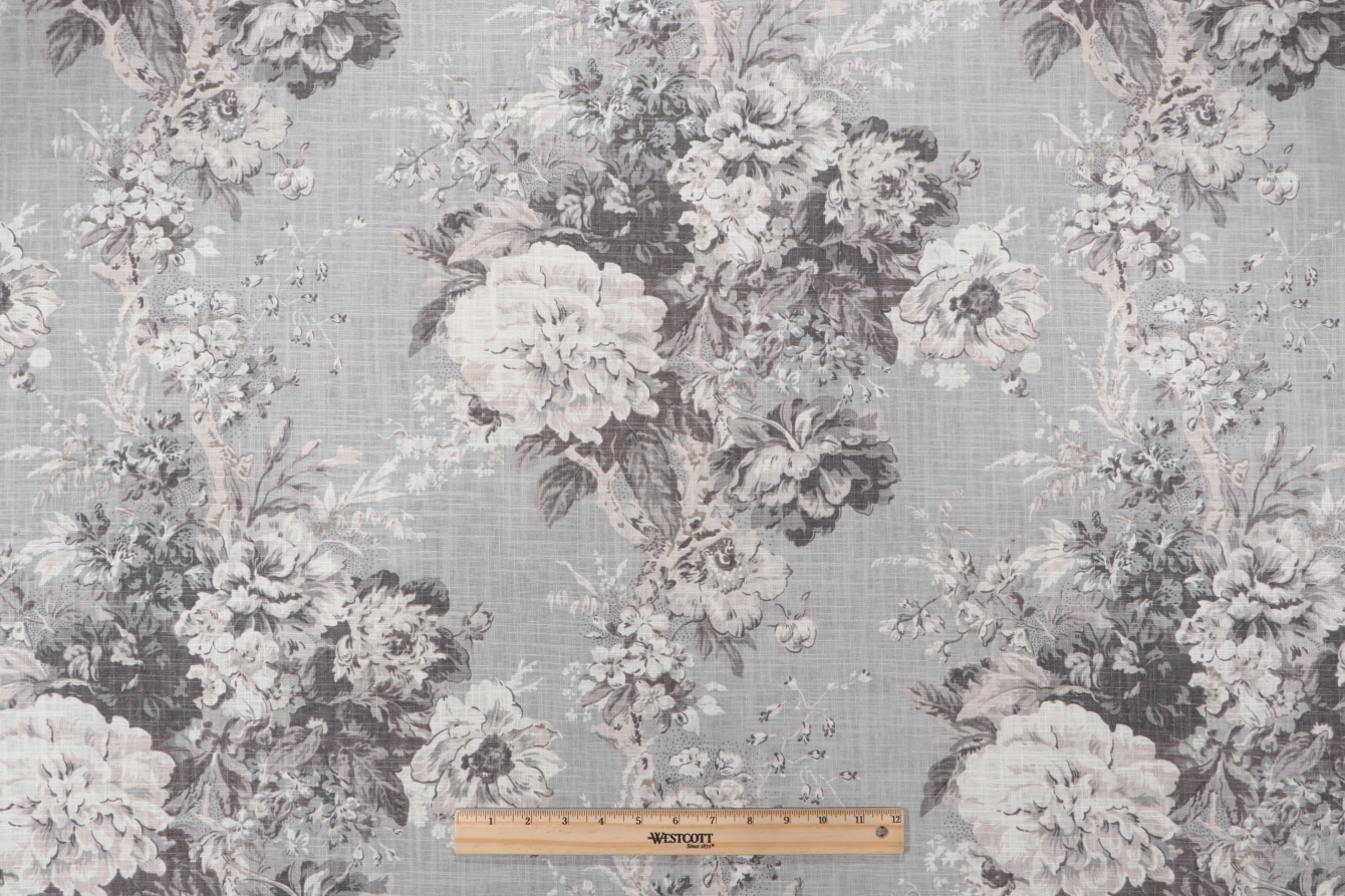 6 Yards Waverly Ballad Bouquet Printed Linen Blend Drapery Fabric in Platinum Details