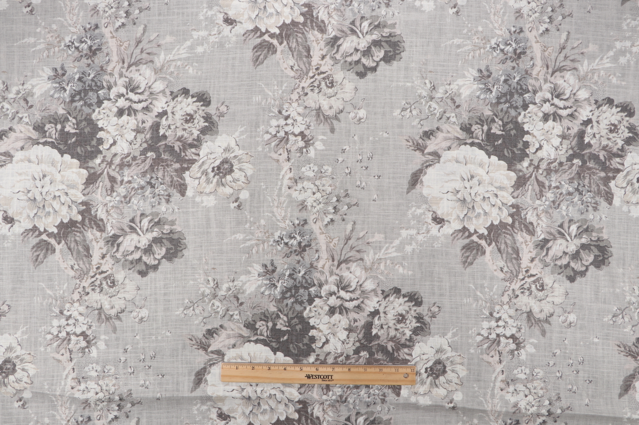 Waverly Ballad Bouquet Printed Linen Blend Drapery Fabric in Platinum is a remnant, which is sold as a whole piece.