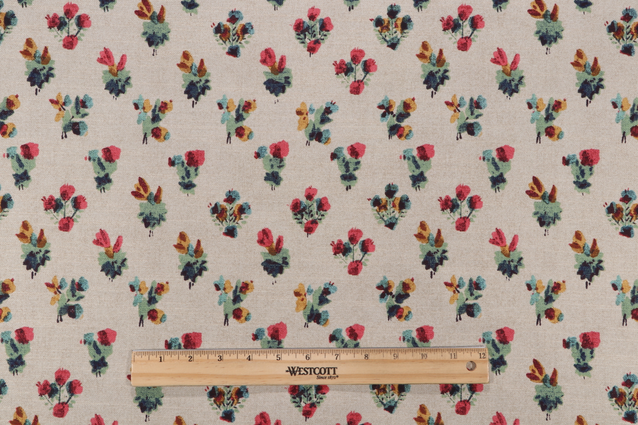 Waverly Cache Printed Cotton Drapery Fabric in Linen is a remnant, which is sold as a whole piece.