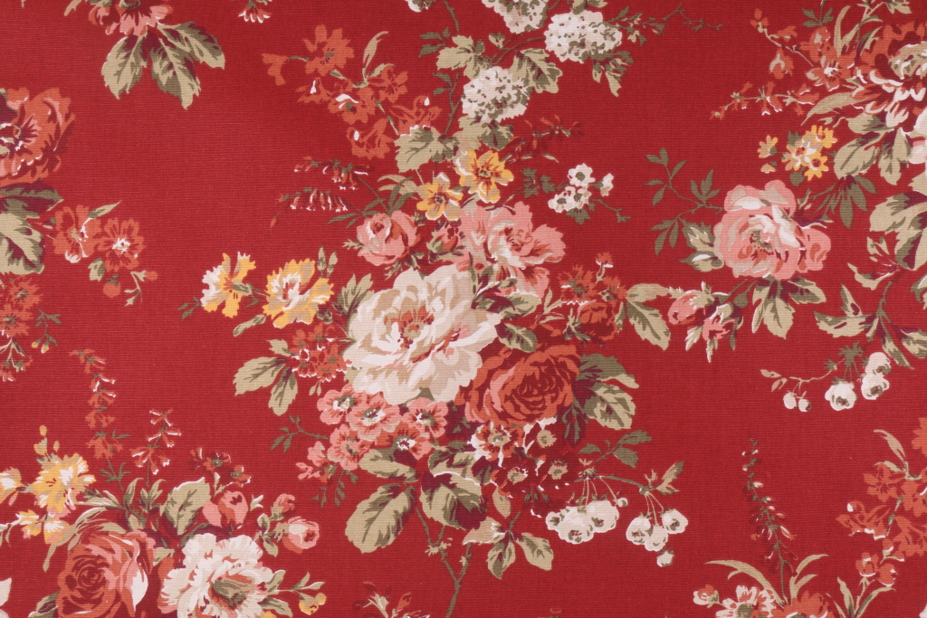 Waverly Rose Floral Printed Cotton Drapery Fabric in Red. This printed fabric is perfect for window treatments, decorative pillows, handbags, light duty upholstery applications and almost any craft project. This fabric has a soft workable feel yet is stable and durable.