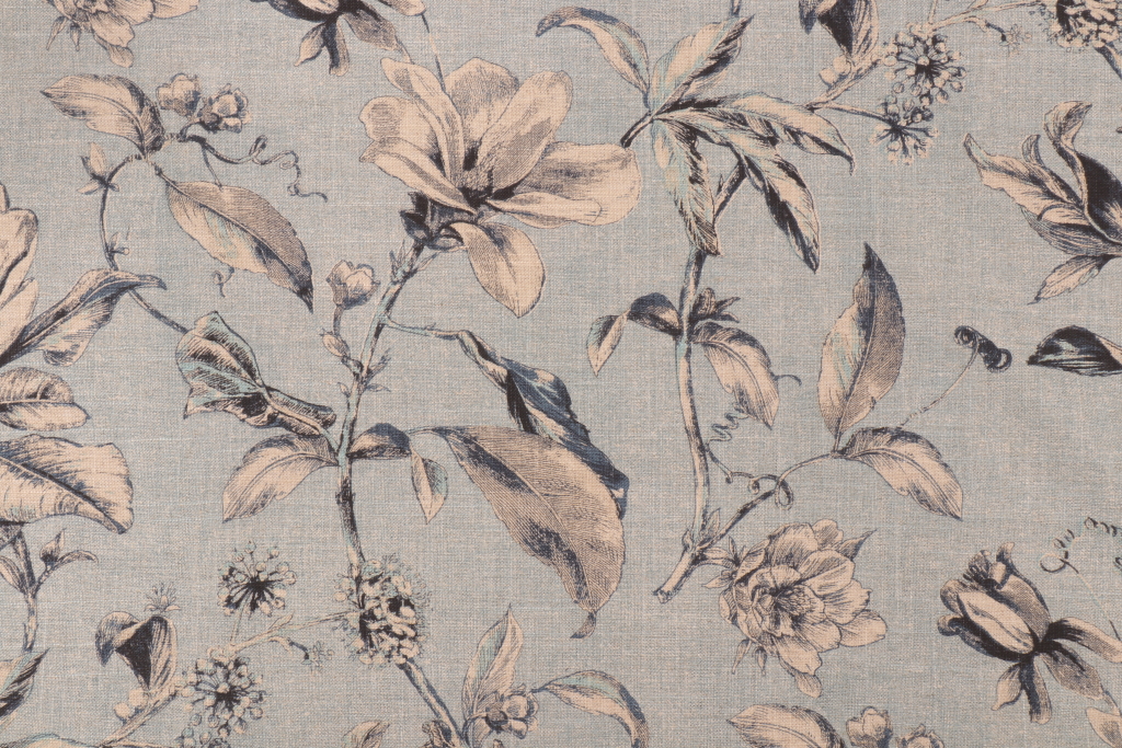0.63 Yards Waverly Sweet Bay Printed Linen Blend Drapery Fabric in Ink Details