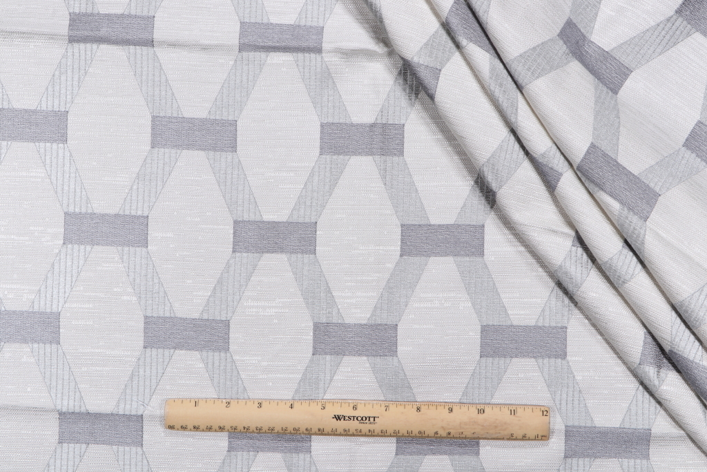Linked Embroidered Drapery Fabric in Fog is a remnant, which is sold as a whole piece.