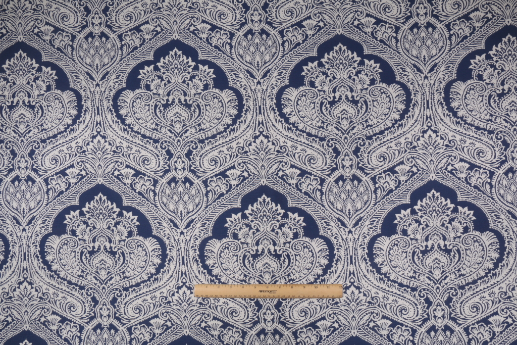 Covington Jacaranda Woven Polypropylene Outdoor Fabric in 557 Dark Denim is a remnant. Fabric remnants refer to leftover pieces of fabric from production runs at manufacturing sites or pieces that remain from by the yard stock. The lengths of these remnants can vary from a few inches to several yards and are typically sold at a reduced price, since they represent remaining inventory.