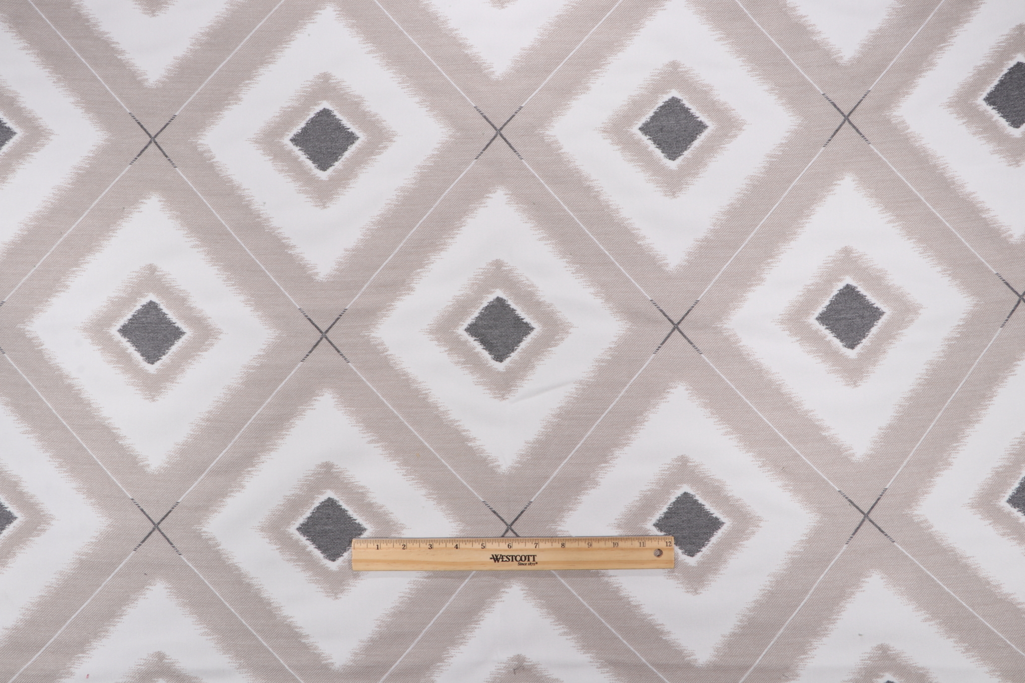 This is 1.25 yards of Delray Diamond, a high-quality woven solution dyed acrylic outdoor fabric from Thibaut. Best suited for small outdoor projects like placemats, BBQ covers, or durable outdoor table runners. Note: If you are unsure about the suitability of this fabric for your specific use case please contact us prior to ordering.
