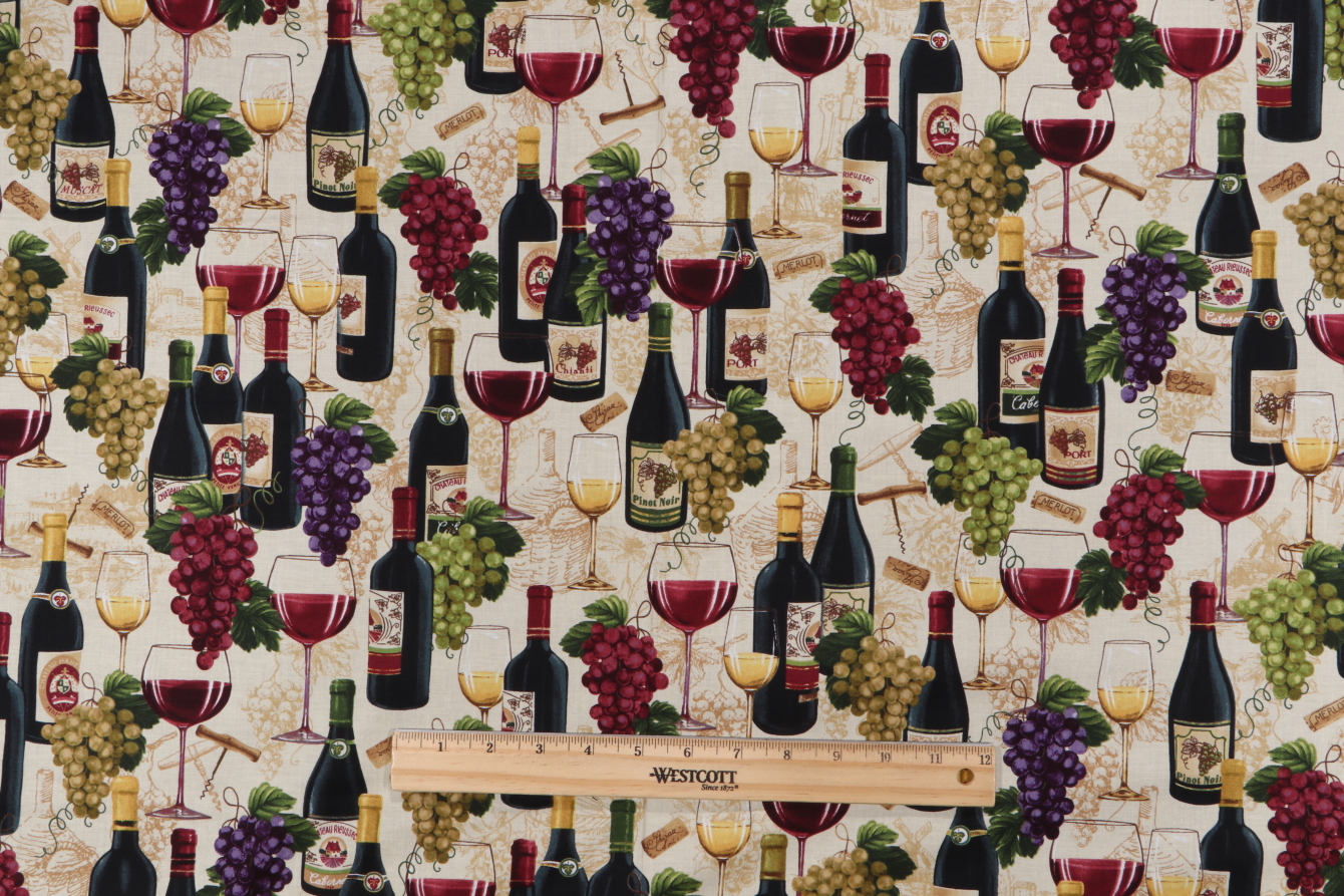 3.63 Yards Fabrics Of SoHo Wine Country - Wine Bottles and Grapes Printed Cotton Craft Fabric in Sand for Timeless Treasures Details