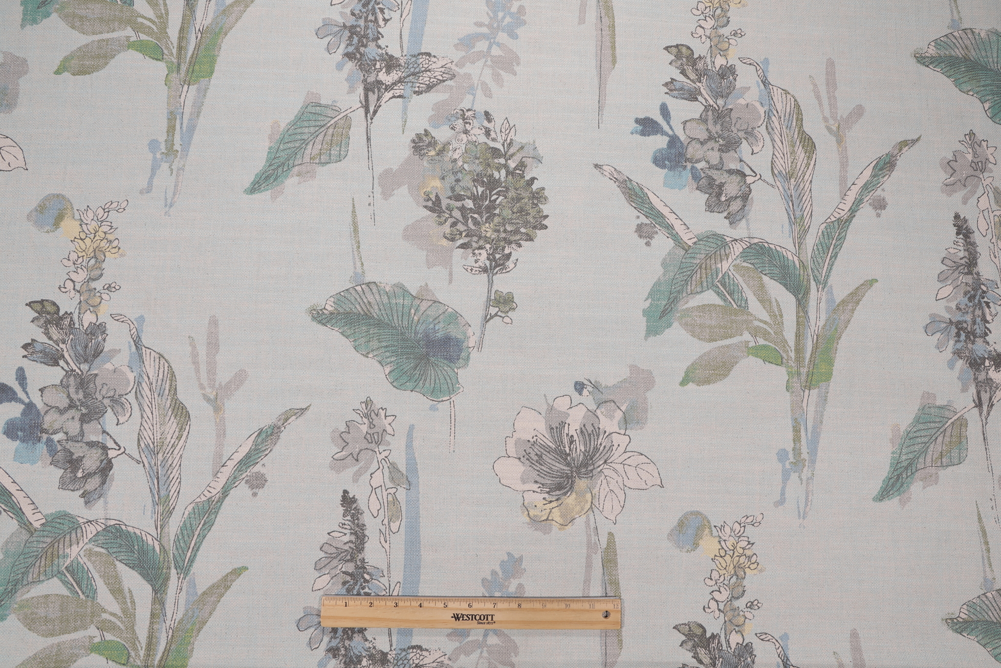 PK Lifestyles Free-Hand Floral Printed Cotton Blend Drapery Fabric in Glacier Details