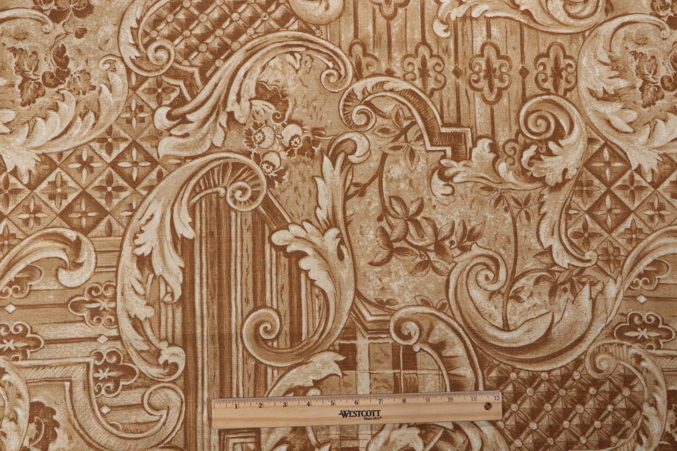 Featured here is 1.75 yards of Herishef printed drapery fabric from Scalamandre. Scalamandre is a heritage brand known for its opulent textiles, frequently featured in luxury estates, historic restorations, and high-end interior design projects. Perfectly balanced with hues of sienna, rosy brown, dark khaki, indian red, and saddle brown, this fabric will surely enhance your application. This fabric is suitable for short curtains, decorative tiebacks, or smaller window treatments. Note: If you are unsure about the suitability of this fabric for your specific use case please contact us prior to ordering.