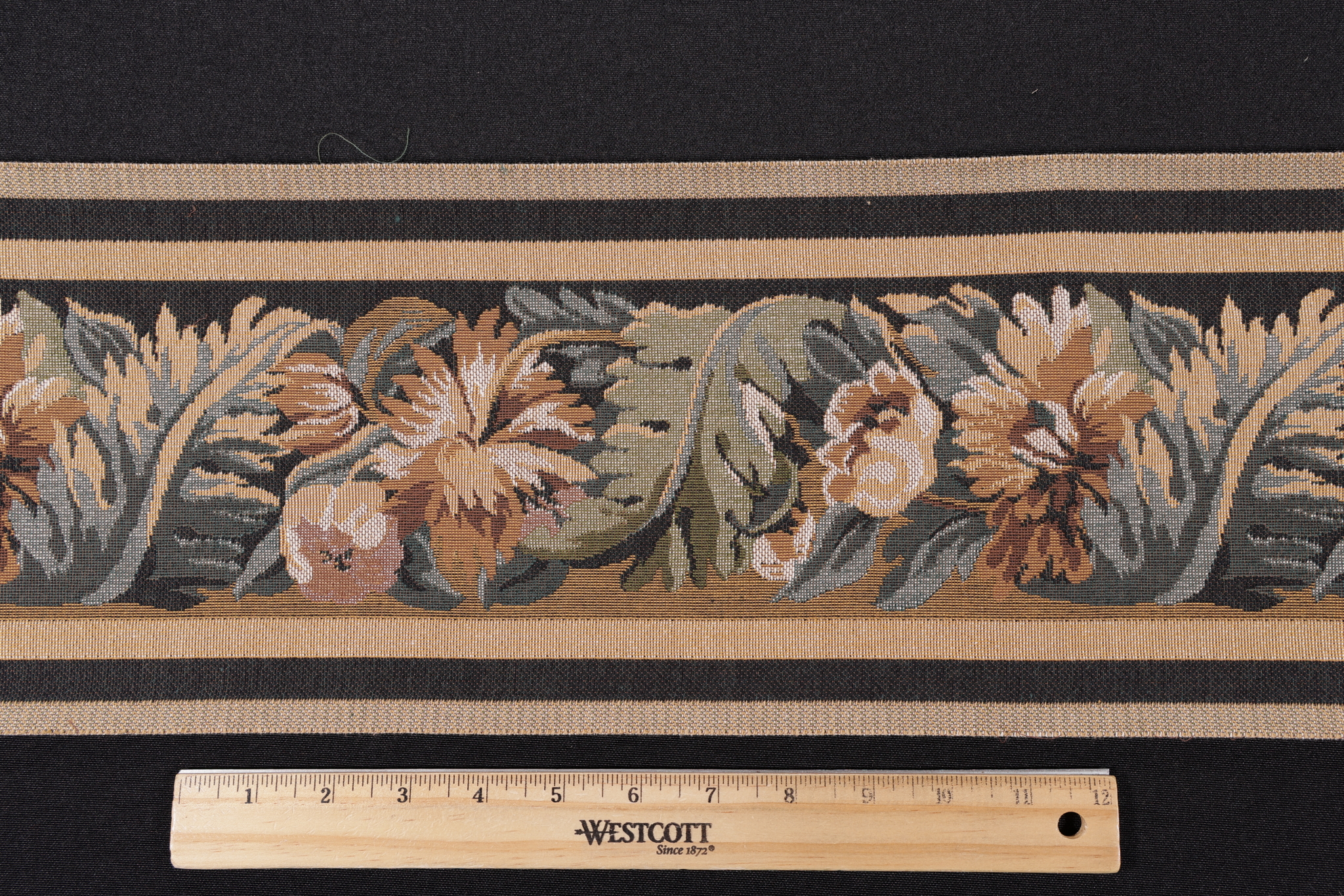 The length of this Scalamandre Vercelli 6'' Border Tapestry Border Fabric in Gold/Olive remnant is 3.75 yard(s).
