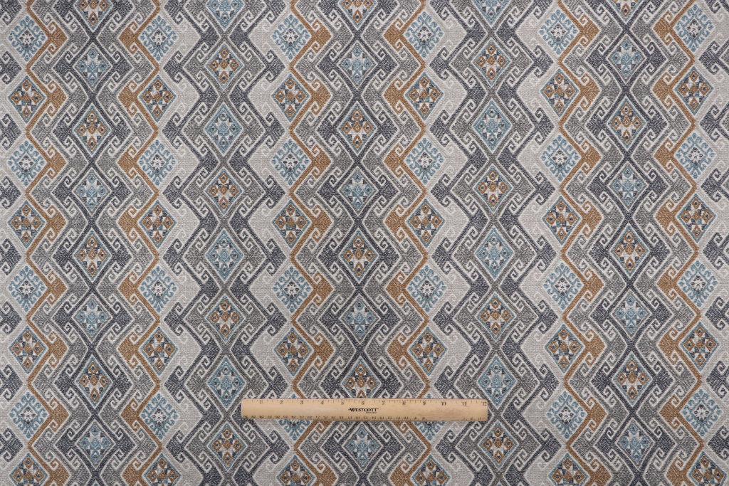 If you order a sample of PK Lifestyles Kaumari Path Printed Cotton Drapery Fabric in Brine the size of the swatch you receive will be approximately 4" x 6". This is enough fabric to verify color and texture, but may not be large enough to capture an entire pattern.