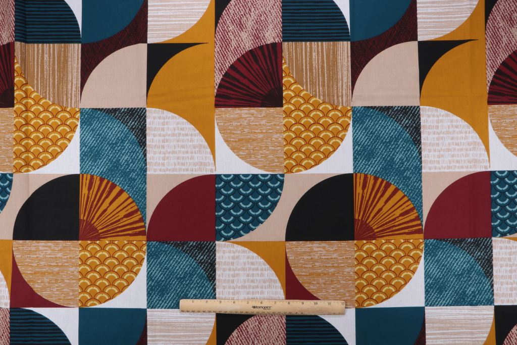 2 Yards Stof France Geometrico Printed Cotton Drapery Fabric in Multicolore Details