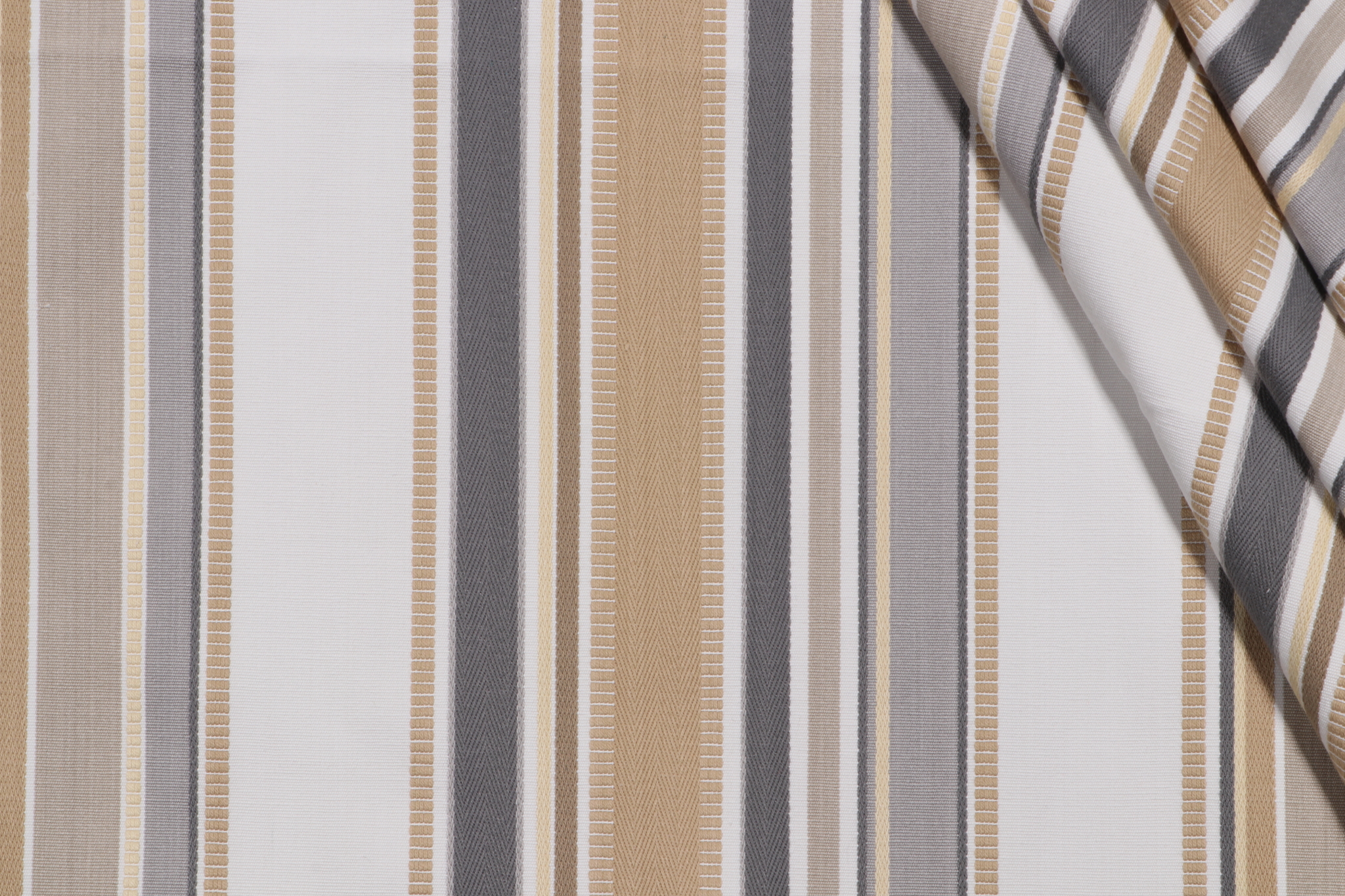 1 Yards Thibaut Barnegat Stripe W80102 Woven Cotton Decorator Fabric in Platinum and Gold Details