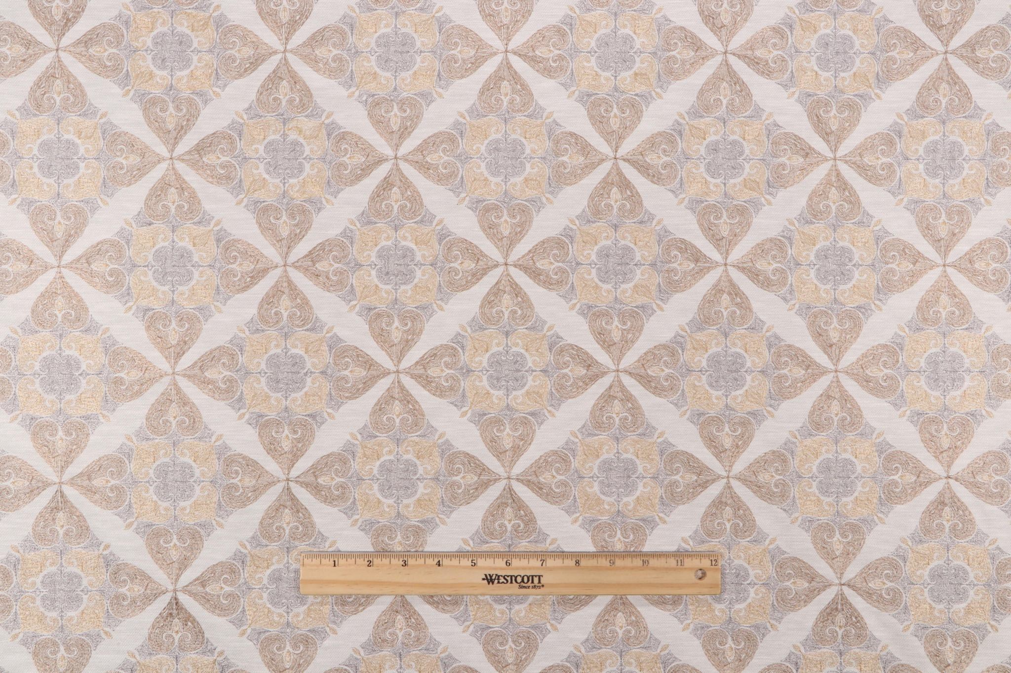 If you order a sample of Villa D Ascoli Oasis Embroidered Drapery Fabric in Chai the size of the swatch you receive will be approximately 4" x 6". This is enough fabric to verify color and texture, but may not be large enough to capture an entire pattern.