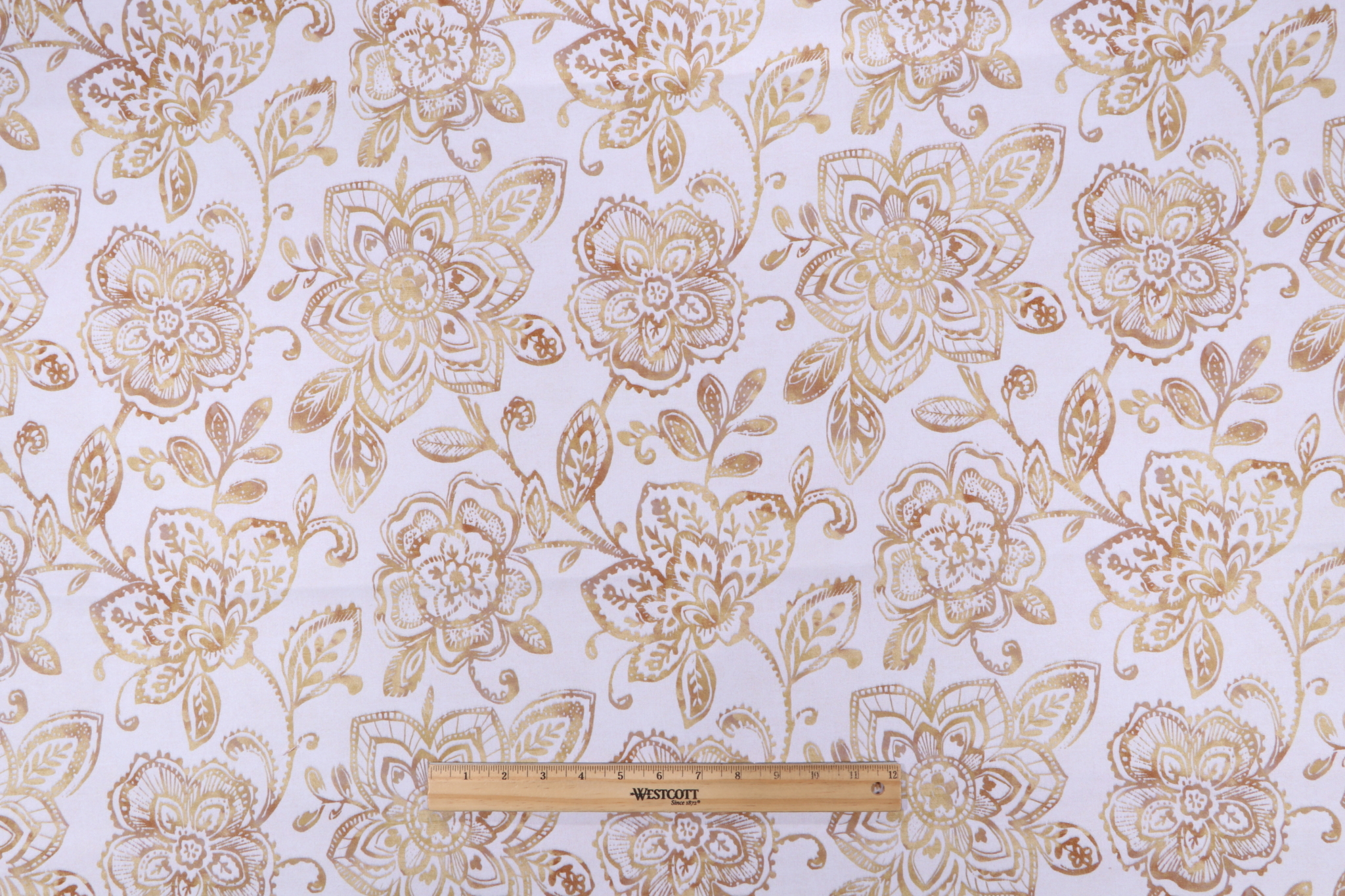 Crypton Bouquet High Performance Printed Decorator Fabric in Golden is a remnant, which is sold as a whole piece.