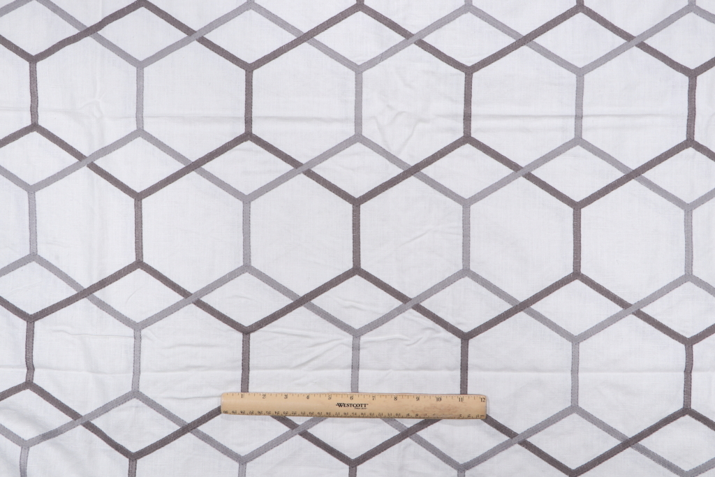 2.25 Yards Hex Fret Embroidered Drapery Fabric in Granite Details