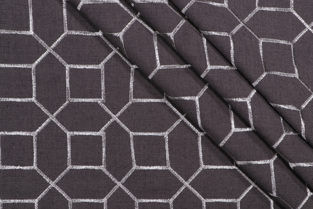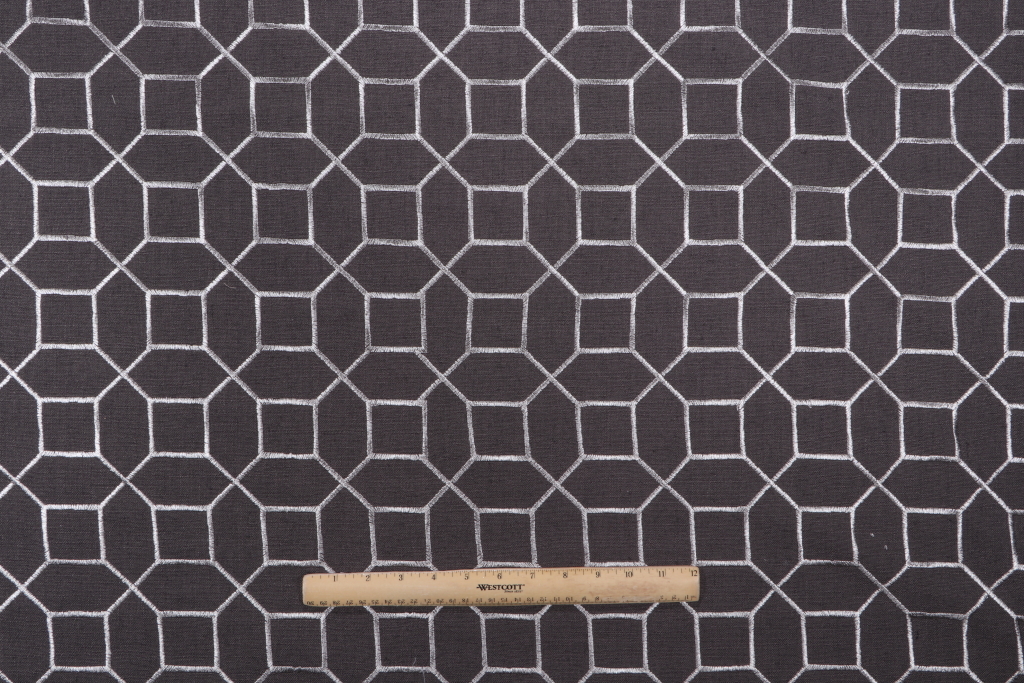 Richloom Mack Embroidered Drapery Fabric in Graphite is a remnant, which is sold as a whole piece.