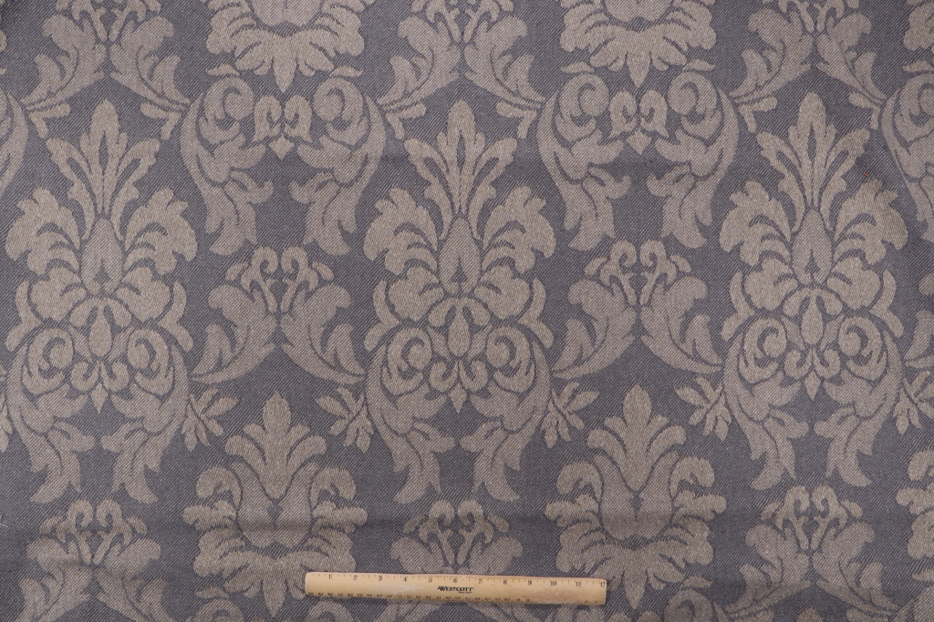 1.75 Yards Whitaker Damask Upholstery Fabric in Gray Details