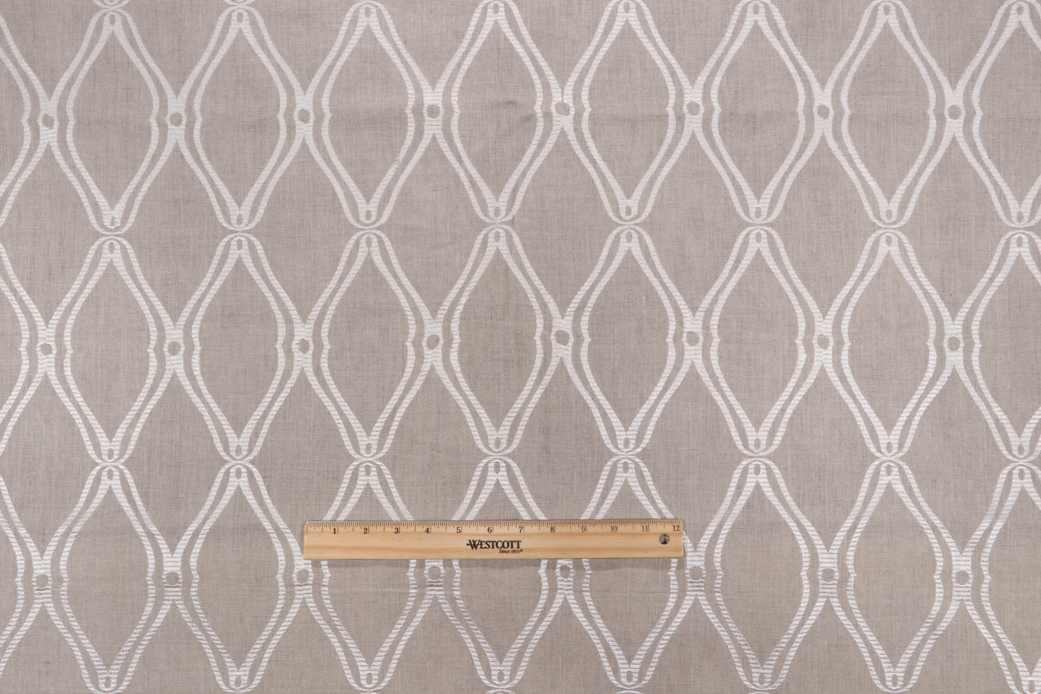 Thibaut Frankfurt W74107 Embroidered Linen Drapery Fabric in Natural Linen is a remnant. Fabric remnants refer to leftover pieces of fabric from production runs at manufacturing sites or pieces that remain from by the yard stock. The lengths of these remnants can vary from a few inches to several yards and are typically sold at a reduced price, since they represent remaining inventory.