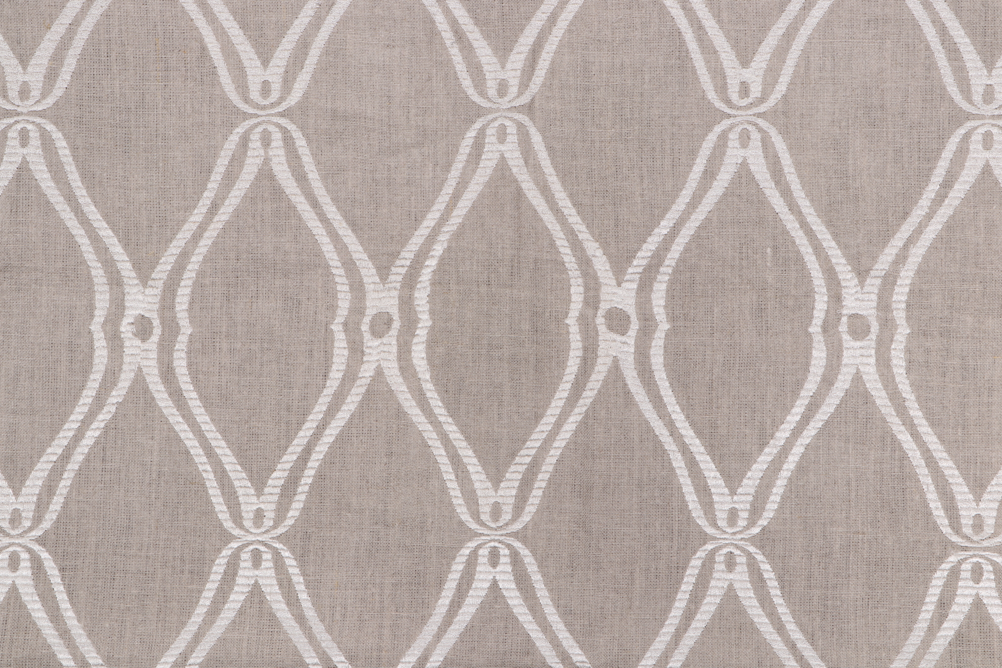 Available now: 3.25 yards of Frankfurt, a premium embroidered linen drapery fabric by Thibaut. This fabric is suitable for short curtains, decorative tiebacks, or smaller window treatments. Note: If you are unsure about the suitability of this fabric for your specific use case please contact us prior to ordering.