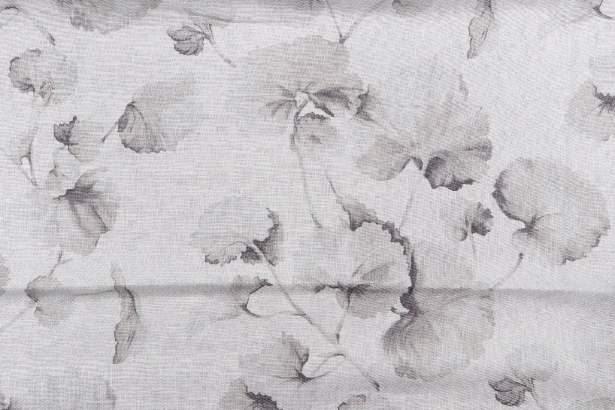 Kendall Wilkinson Ink Wash Printed Linen Drapery Fabric in Platinum for Fabricut is a remnant, which is sold as a whole piece.