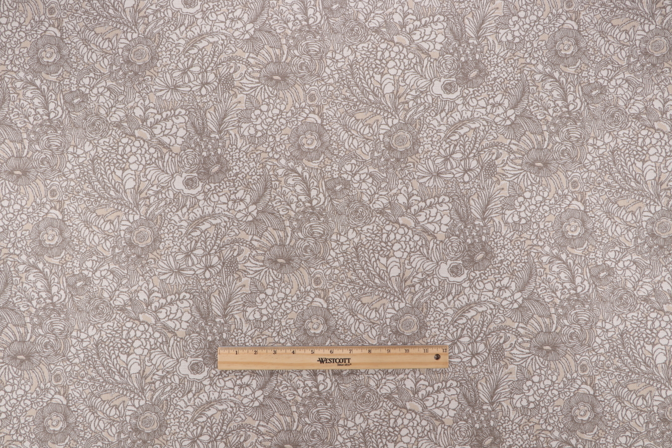 Available now: 13.25 yards of Floral, a premium woven solution dyed acrylic outdoor fabric by Sunbrella. With its soft, neutral tones of dark gray, rosy brown, silver, gray, and light gray, this fabric blends effortlessly into any space. Sunbrella is renowned for its high-performance outdoor fabrics, offering exceptional durability, UV resistance, and weatherproof qualities—ideal for patio furniture, marine upholstery, and outdoor drapery. This yardage is ideal for making a full set of outdoor sectional cushions or chaise lounge covers. It can also be used for a durable outdoor awning or large bean bag chairs for patios. Note: If you are unsure about the suitability of this fabric for your specific use case please contact us prior to ordering.