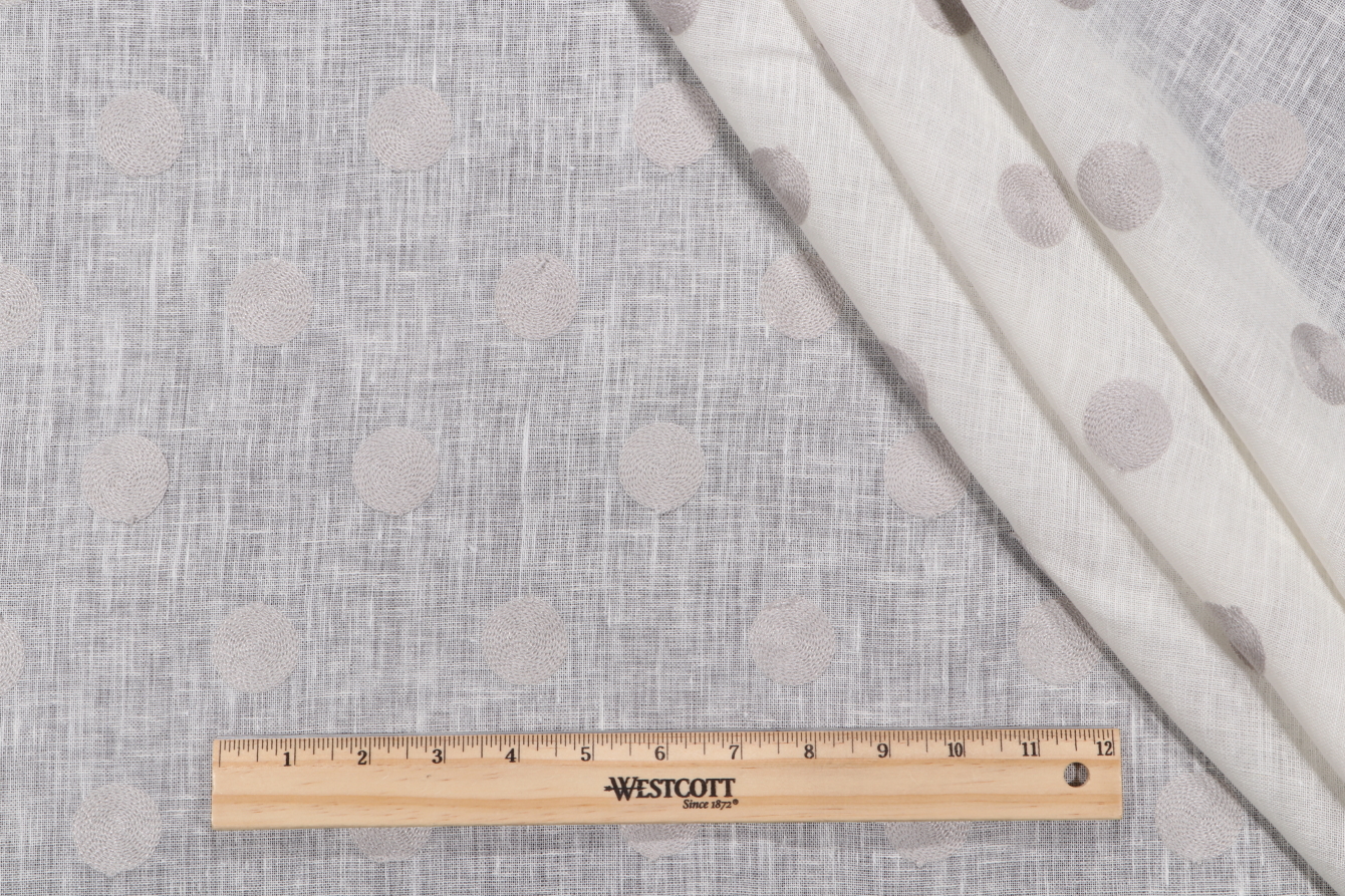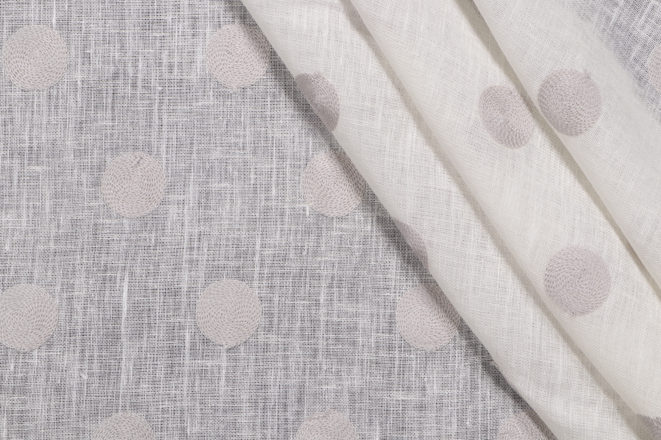 Lino Textiles Daisy Embroidered Linen Sheer Drapery Fabric in Grey on Ivory Details