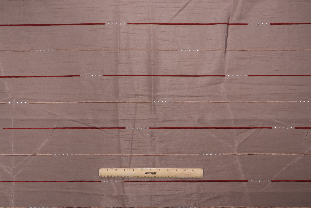 Old World Weavers Brilliants Rhinestone Embroidered Drapery Fabric in Taupe for Scalamandre is a remnant. Fabric remnants refer to leftover pieces of fabric from production runs at manufacturing sites or pieces that remain from by the yard stock. The lengths of these remnants can vary from a few inches to several yards and are typically sold at a reduced price, since they represent remaining inventory.