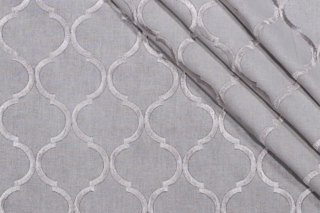 Richloom Ornella Semi-Sheer Embroidered Drapery Fabric in Silver is a remnant, which is sold as a whole piece.