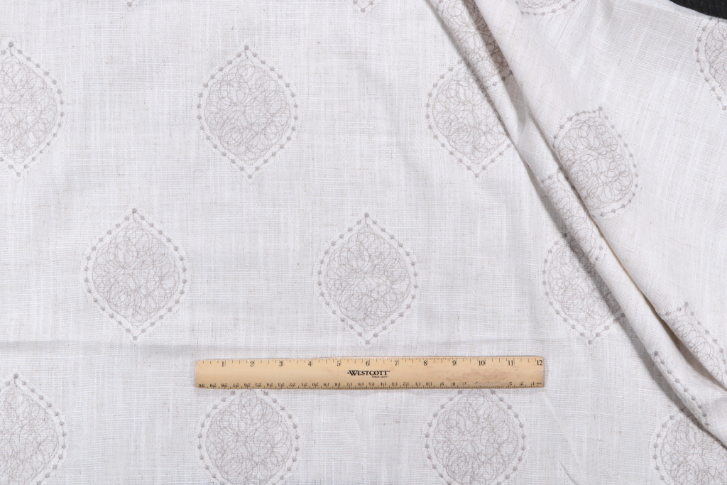 1.25 Yards Mini Medallion Embroidered Drapery Fabric in Grey Details