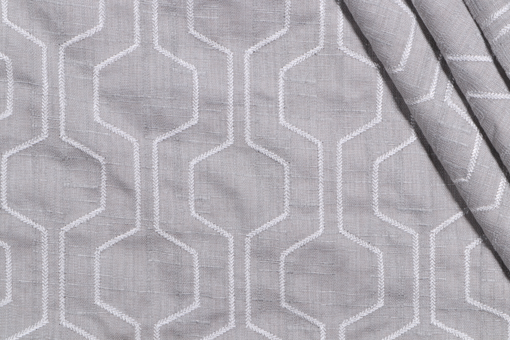 2.5 Yards Hexagon Fret Embroidered Drapery Fabric in Sterling Details