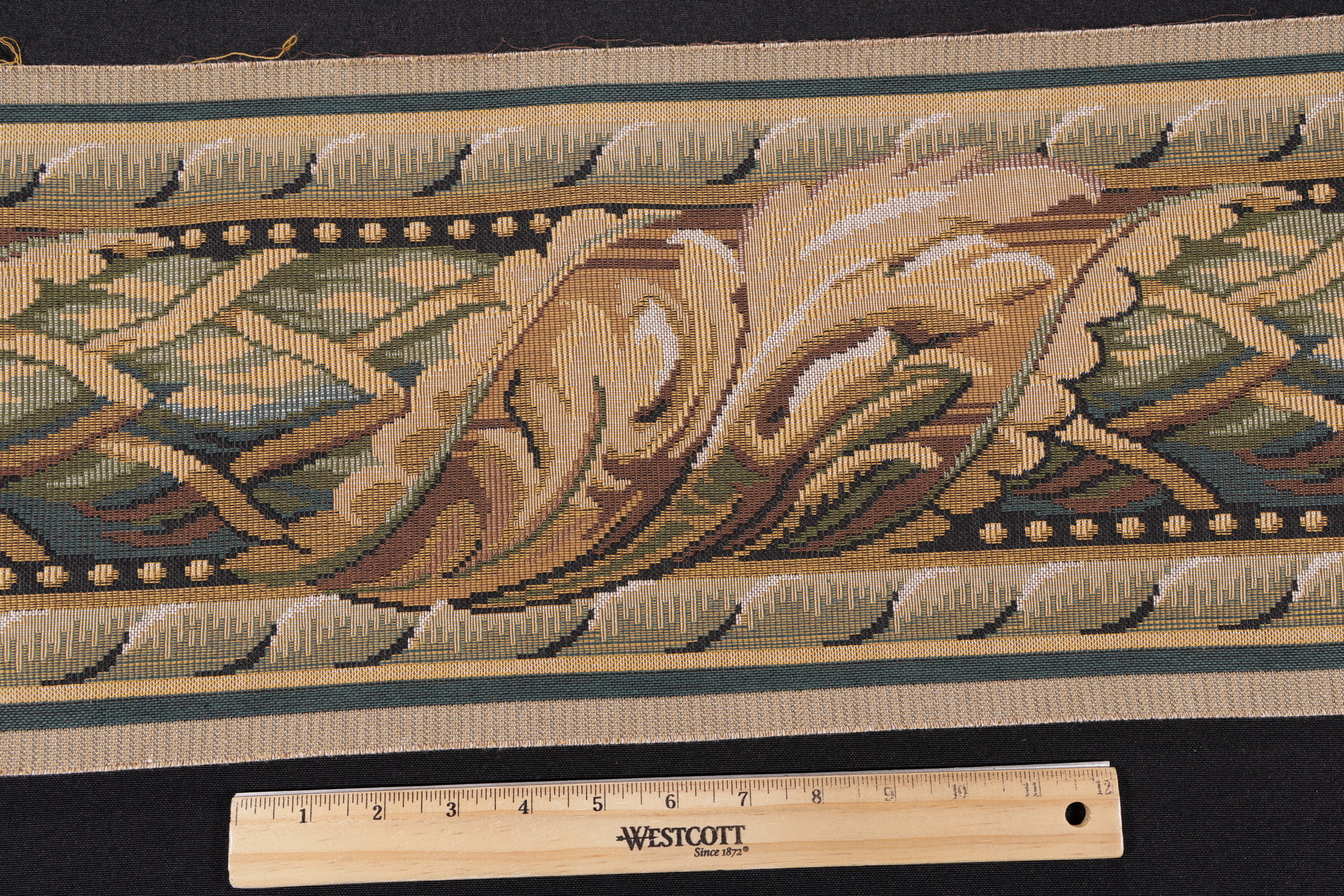 - Additional Notes: This material is a 9 inch wide border meant to accent upholstery projects.