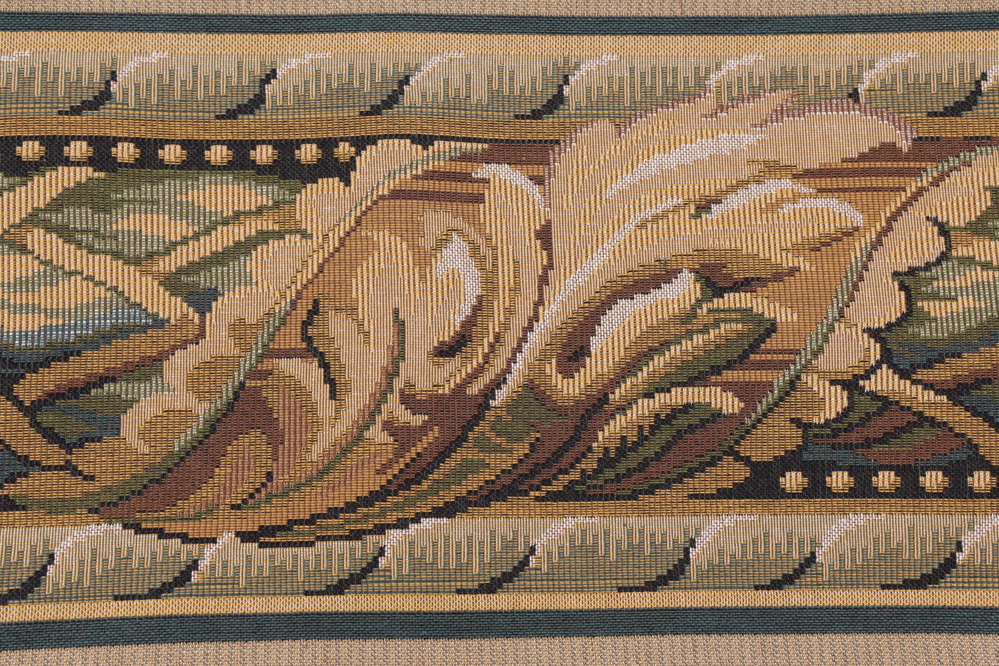 Scalamandre Vietri II 9'' Border Tapestry Border Fabric in Green/Brown is a remnant, which is sold as a whole piece.
