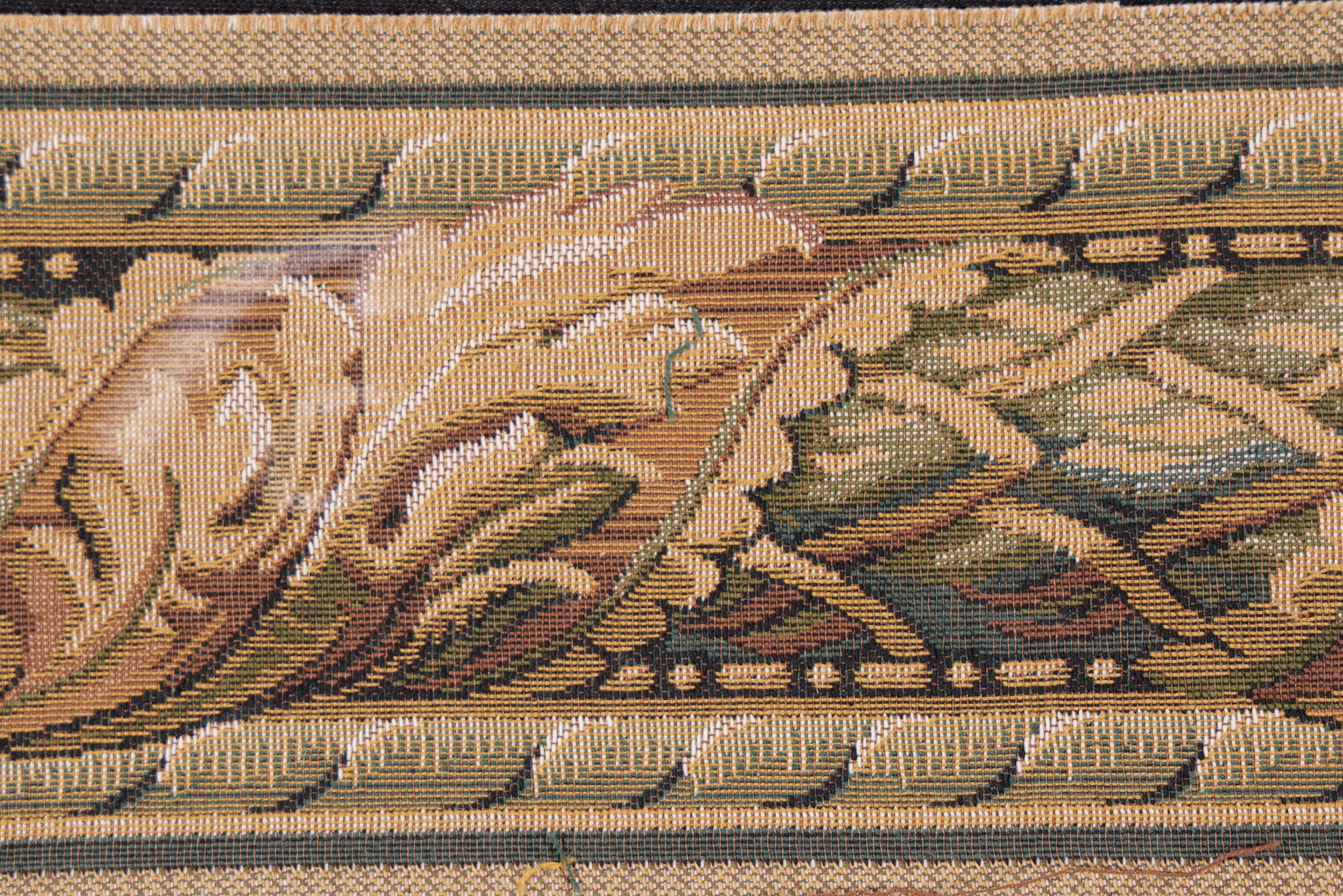 Scalamandre Vietri II 4.5'' Border Tapestry Border Fabric in Green/Brown is a remnant. Fabric remnants refer to leftover pieces of fabric from production runs at manufacturing sites or pieces that remain from by the yard stock. The lengths of these remnants can vary from a few inches to several yards and are typically sold at a reduced price, since they represent remaining inventory.