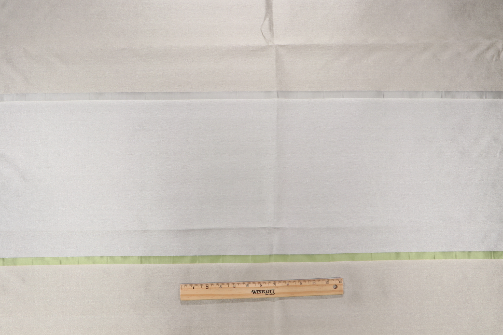 Scalamandre Silk Stripe Sheer Drapery Fabric in Green/Grey is a remnant. Fabric remnants refer to leftover pieces of fabric from production runs at manufacturing sites or pieces that remain from by the yard stock. The lengths of these remnants can vary from a few inches to several yards and are typically sold at a reduced price, since they represent remaining inventory.