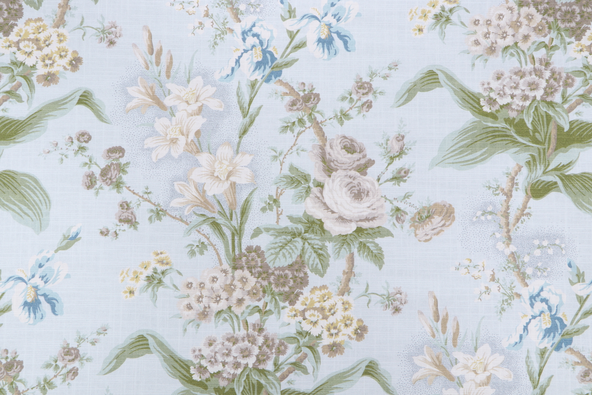 Waverly Lucinda Printed Cotton Drapery Fabric in Sky Details